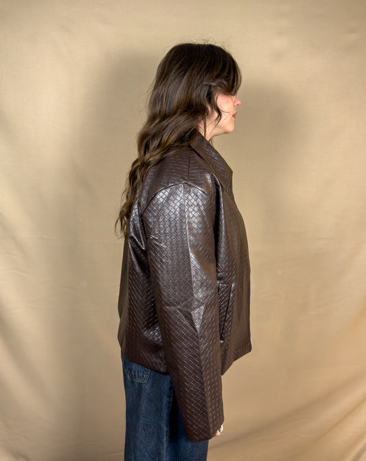 AR BROWN WOVEN LEATHER JACKET
