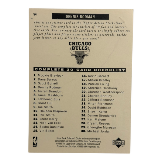 Dennis Rodman Bulls nba sticker Upper deck 1996
